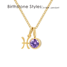 14K Gold, Silver & Rose Gold Zodiac Birthstone Necklace - 12 Sign Personalized Jewelry
