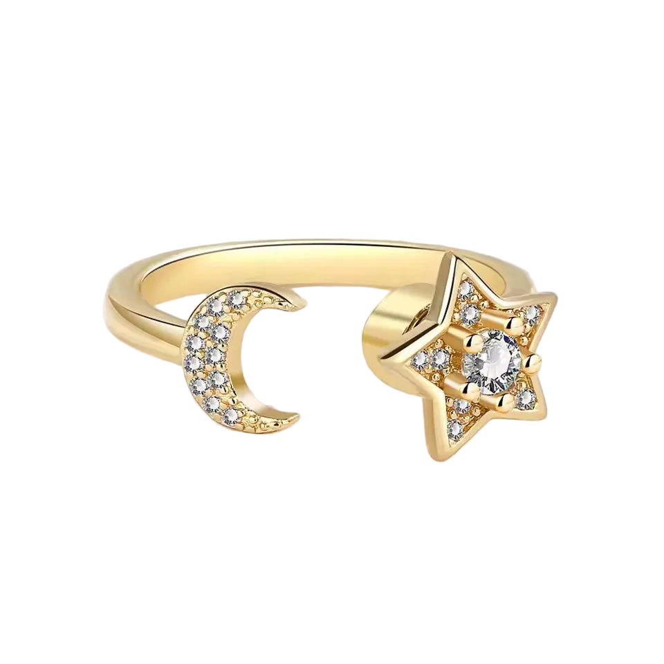 Add a touch of elegance and uniqueness to your jewelry collection with our Crescent Moon and Star Spinner Ring.