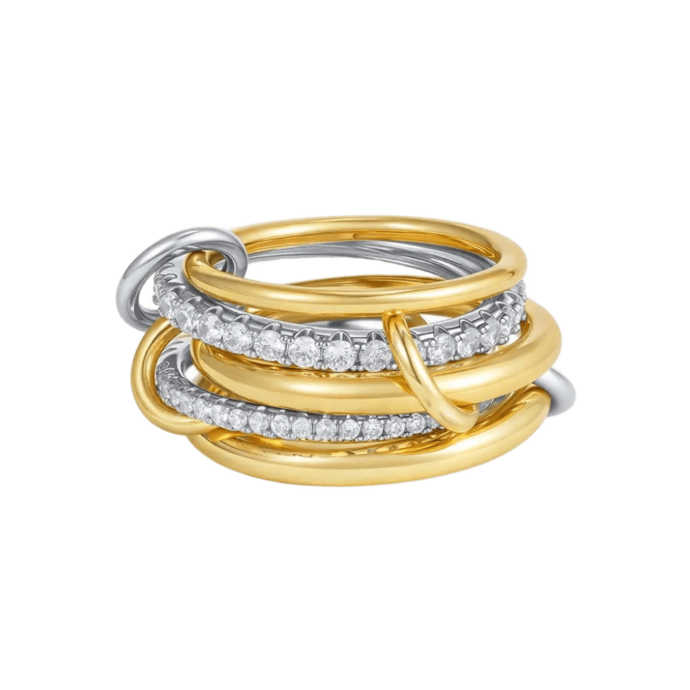 18K Elegant Gold & Silver Stacked Rings