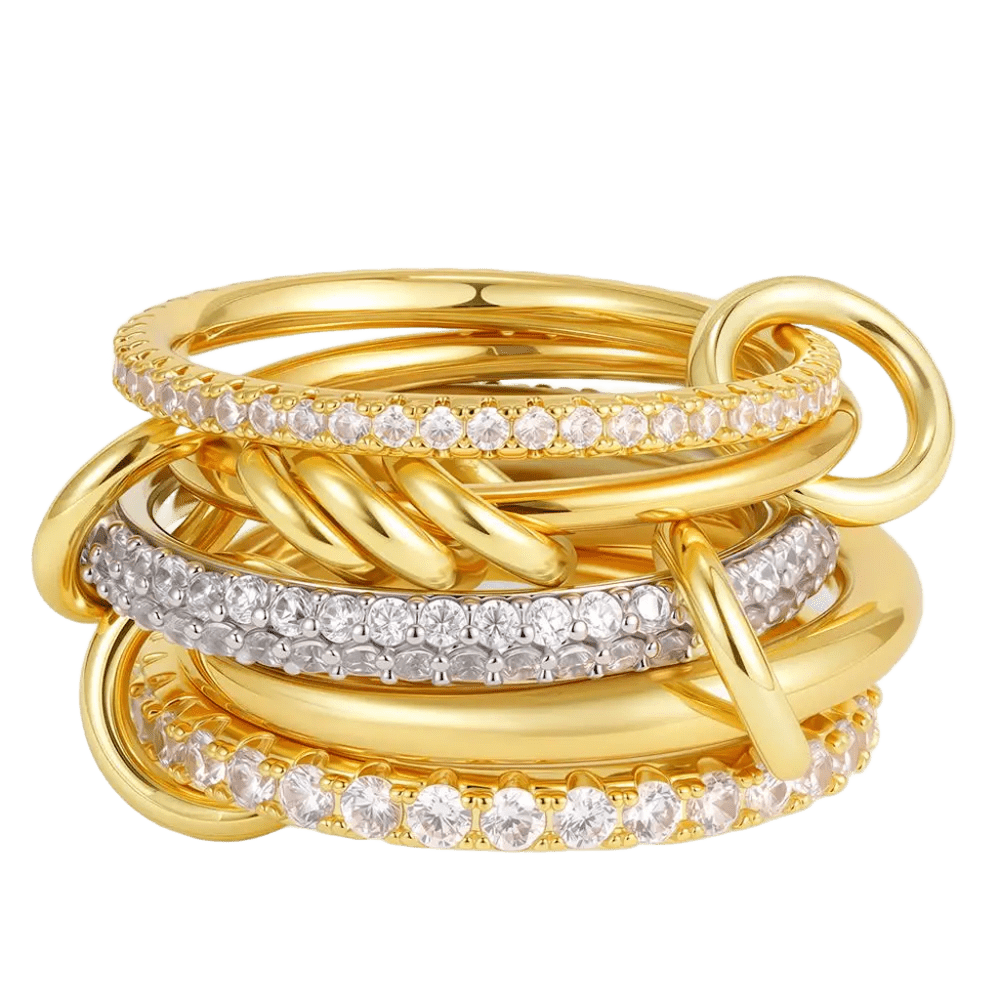18K Elegant Gold Plated Stacked Rings with White Stones