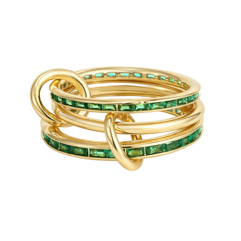 18K Elegant Gold Plated Stacked Rings with Green Stones