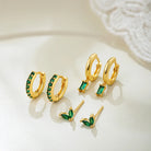 18K Gold Plated 3-Piece Emerald Green Earring Set