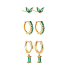 Elevate your style with this 3-piece earring set, crafted in 18K gold plating and accented with brilliant emerald-green zircon stones. The set includes: