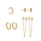 Elevate your jewelry collection with this elegant 4-piece earring set, crafted with 18K gold plating for a luxurious finish. The set includes: