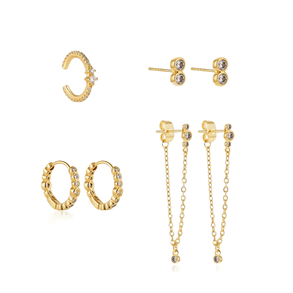 18K Gold Plated 4-Piece Earring Set with Zircon Accents